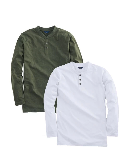 In a choice of stylish marls, these soft and skin-kind cotton jersey grandad tops are so comfy and versatile that we’ve put them in packs of two so you can wash and wear them on repeat. Rib to the neck, herringbone tape to the back neck and twin needle stitching to the hem and cuffs are little finishing touches that will keep them looking smart for seasons to come.