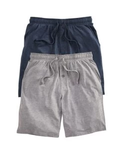 Soft and lightweight cotton-rich jersey shorts in a pack of 2, both with an elasticated waistband, adjustable drawcord and button fastening, plus front pockets and a back patch pocket.