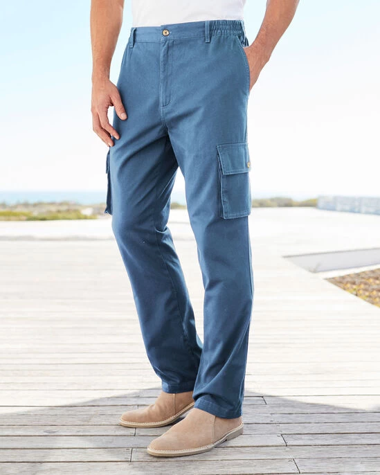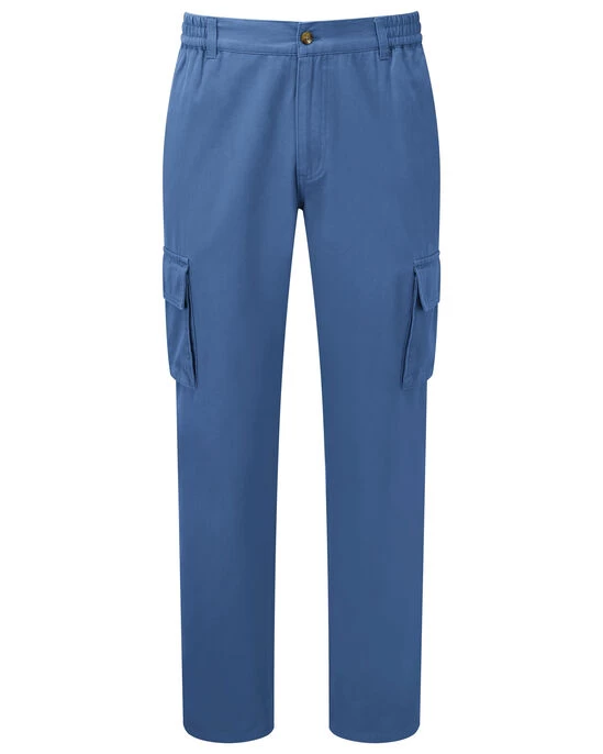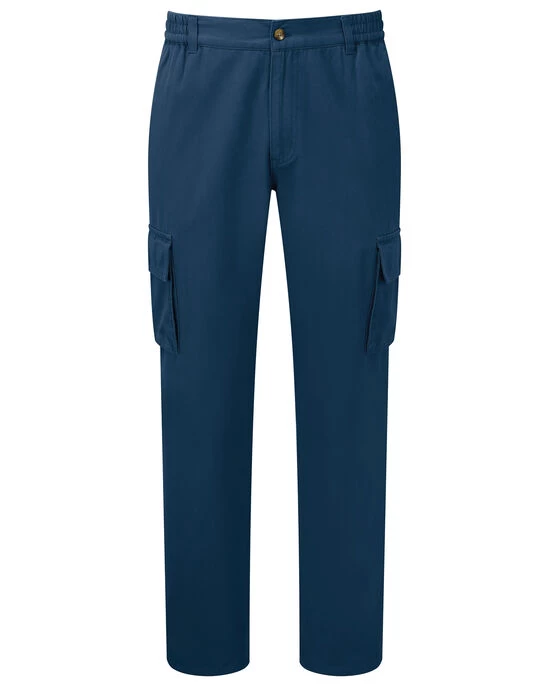 Softly peached with side waist elastication, these cargo trousers are bursting with features that will keep you comfortable all day long. With cargo pockets to each leg, side slant pockets, button fastening back pockets, belt loops and button fastening zip fly.