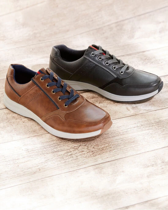 You’ll love these on-trend trainers for their slick leather-look design. Contrasting trim details and a stylish sole in complementary tones look perfectly on-trend, while the hardwearing soles and lace-up fastening make them practical for comfortable, secure everyday wear. We love them, with jeans or trousers for the perfect balance of smart-casual style.