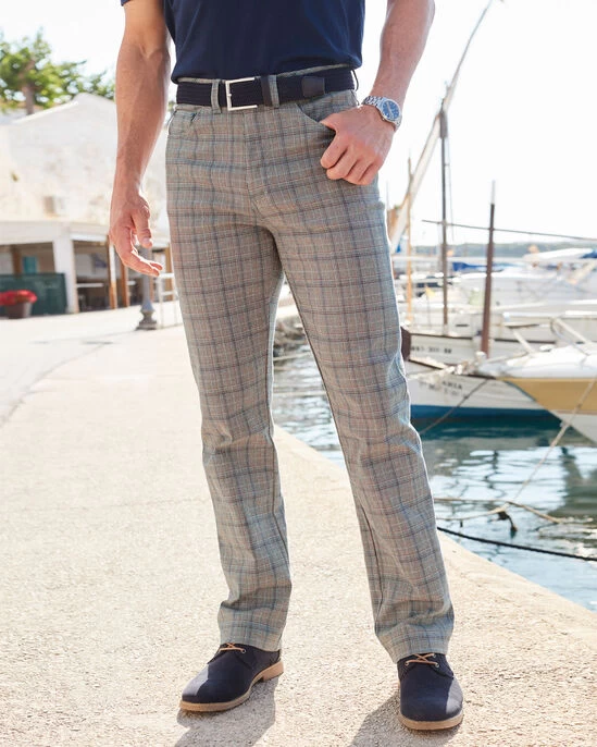 Bringing you unbeatable comfort and the perfect balance of smart-casual style, it’s no surprise that these check jeans are bestsellers season after season. The cotton-rich fabric has plenty of stretch for a comfortable fit, whilst the softly brushed outer will appeal to your softer side. We’ve kept the straight-leg styling simple, with a gunmetal stud button waist and a zip fly, plus five pockets, all with branded and embossed rivets. Twin needle stitching to the front, back rise, back yoke and pocket edges give them a quality finish that will last.