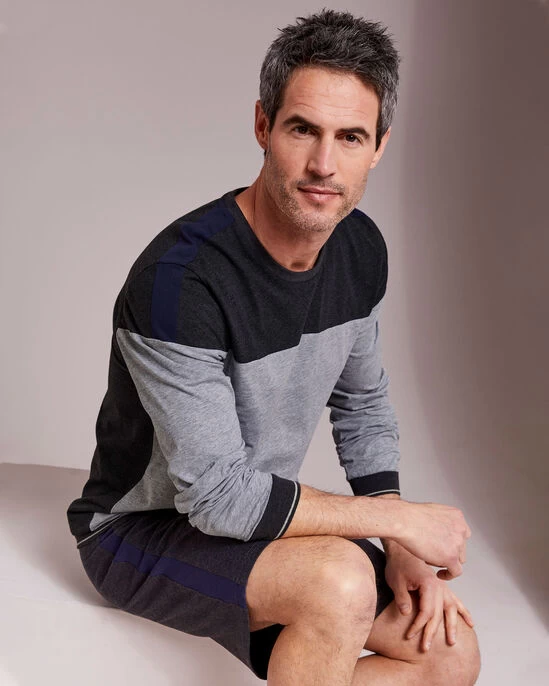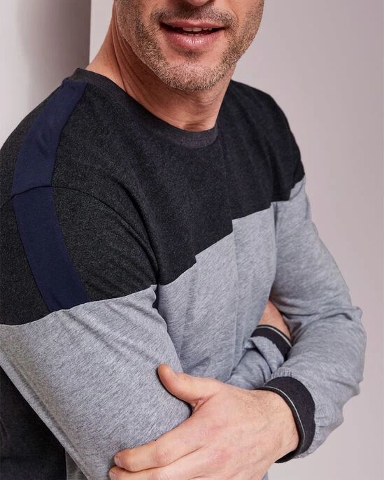 Relax with our long-sleeved PJ set, perfect for a film night or lazy Sunday morning! The simple, colour block design adds a smart touch, while the elasticated waistband with an inner drawcord gives you a comfortable, customisable fit. Top it off with our soft top that features an elasticated hem and cuffs, and you’ve got the perfect PJ set!