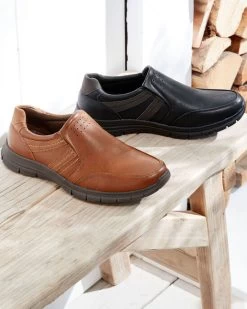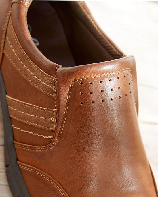 For a relaxed yet stylish everyday shoe, look no further than these slip-on faux leather numbers. We’ve taken our bestselling upper style and combined it with our comfort sole. Elasticated side inserts make them easy to get off and on, while the stitch detailing adds definition for a truly dynamic shoe. We love the relaxed aesthetic that comes from the leather-effect uppers, adding an air of cool to jeans, track pants and shorts alike.
