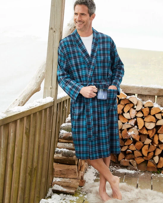 One of our favourite times of the day is when we wrap up in a cosy dressing gown… especially when it comes in a brushed cotton fabric that’s as soft as this! With a comforting shawl collar and a wrap-around self-fabric tie belt, you’ll throw it on and instantly feel more relaxed. Finished with twin front pockets and a choice of new colour-rich checks, those dark winter nights are starting to look very inviting!