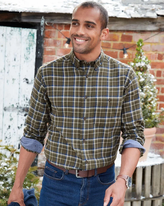 Pure cotton flannel is a cosy choice when the air outside cools, and this classic check shirt adds an extra layer of warmth to your wardrobe. Perfect combined with jeans, cords or chinos, you have a choice of colour-rich checks in seasonal shades to suit your style, whilst a button-down collar, double button cuffs and a chest patch pocket, plus chambray trims to the inner yoke, collar stand and under the cuffs, prove that it’s the little details that make all the difference!