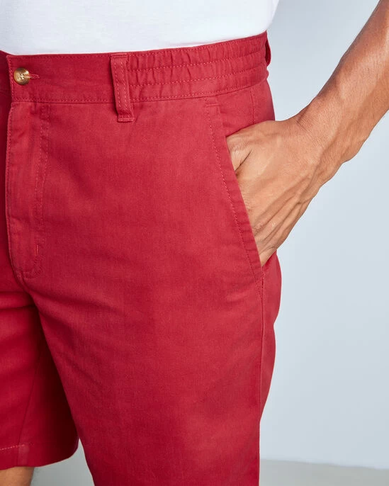 Smart-casual style meets easy comfort in these flat-front shorts. Essential for sunnier days, their prewashed pure cotton fabric has an irresistibly soft-peached finish, while the elasticated waist leaves plenty of room for comfort and movement. We’ve finished them with a zip fly, button fastening and pockets to the front and back.