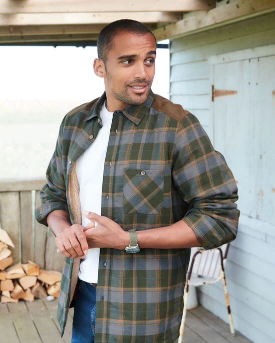 Our heavyweight fleece-lined check shirt is a cosy choice for winter. The pure cotton yarn-dyed check fabric is lined with sumptuously soft teddy fleece for unbeatable warmth and comfort that’s perfect for layering over T-shirts. The sleeves are lightly wadded, with stylish corduroy panels to the shoulders and back. Finished with double button cuffs, a button-fastening check pocket and side splits, this shirt will quickly become your go-to on cooler days.