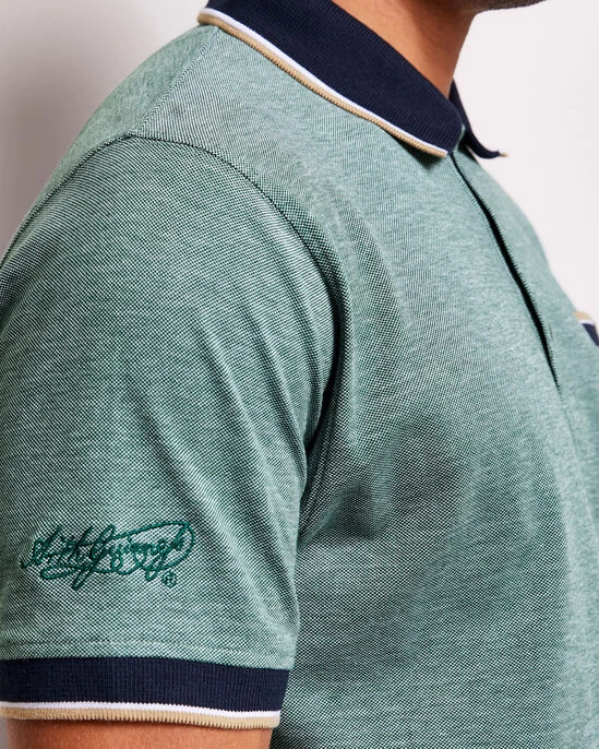 This iconic piqué polo comes in soft tones and our bestselling two-tone birdseye fabric for breathable comfort and style. Our flat knit anti-curl collar is tipped for a neat finish, while classic Guinness™ embossed buttons, woven side tab and Arthur Guinness sleeve embroidery complete the look.