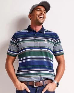 Get that glass-half-full feeling with our bright and bold striped polo shirt based on a bestseller! On a timeless base with stripes, this polo brings a pop of colour while still remaining subtle: perfect for pairing with jeans and a simple jacket. The pure cotton fabric and classic short sleeve styling guarantee all-day comfort and breathability, while the anti-curl collar means you can keep that just-ironed look for longer. A button-down placket with Guinness™ embossed buttons and Guinness™ embroidery to the chest, plus woven side tab bring this smart look together.