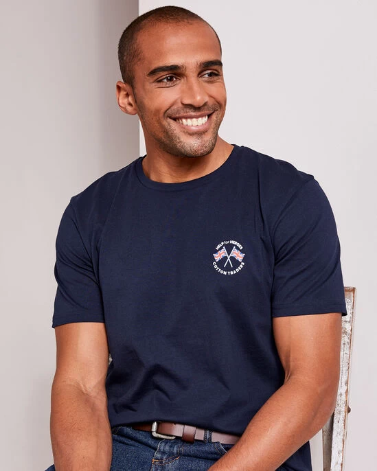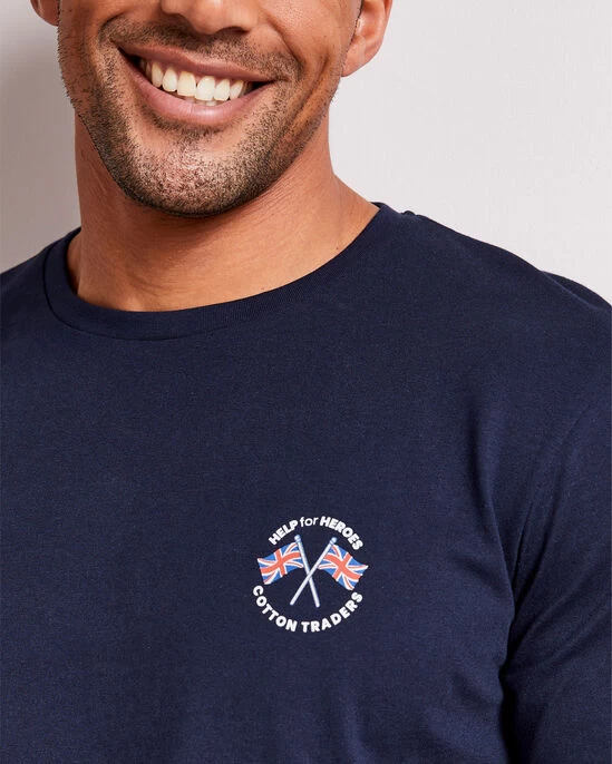 Add a timeless tee to your wardrobe and support Help for Heroes at the same time with this essential T-shirt! The pure cotton fabric is soft, skin-kind & comfortable and cut in a classic shape with a crew neck and short sleeves. Twin needle stitching to the cuffs and hem give it a high-quality, durable finish that will last. Finished with Cotton Traders sleeve embroidery, Help for Heroes woven side tab and chest print.