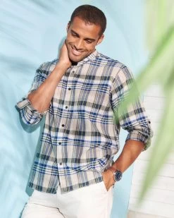 Slip into something stylish and comfortable with this long sleeve linen-cotton blend shirt, perfect for keeping cool but covered when the weather warms up. The grandad collar is perfect for adding a little something extra to your look, while still keeping it classic with trousers or jeans. Even better, the choice of designs and sleeves that tab back to ¾ length mean you can adjust your style to suit you (and the weather). Â