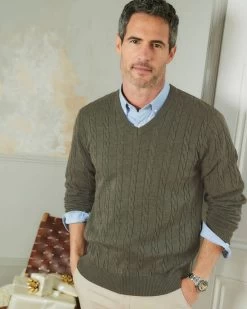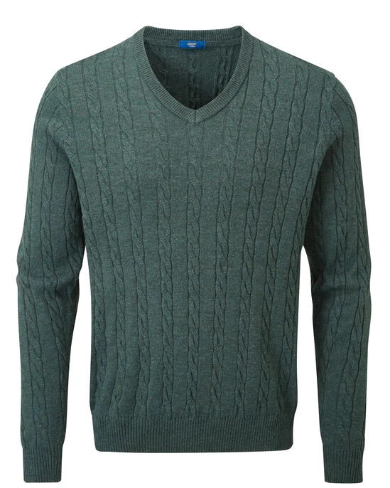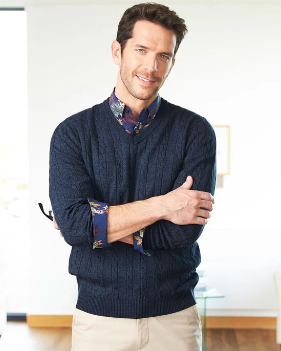 As soft as cashmere (yes, really!) but completely effortless to care for, our cable knit jumper adds a little bit of luxury to your wardrobe. With all-over cables and a classic V-neck, it’s so soft and versatile that you’re going to find yourself reaching for it day after day, so we’ve made sure it’s machine washable so you can! Not only that but it also comes in a choice of colours that complement our shirt collection perfectly. Semi-fashioned set-in long sleeves and ribbed trims to the neck, hem and cuffs give it a comfortable fit that makes layering easy.