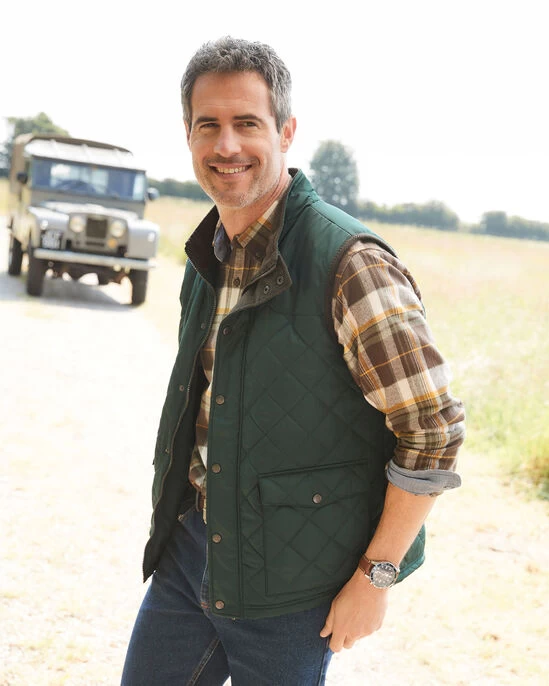 Introducing a gilet so cosy, you’ll be crossing your fingers for cool weather so you can wear it! With a showerproof finish, diamond quilting to the body, a yarn-dyed check lining, plus cord trims throughout, it strikes the perfect balance between practicality, cosiness and country-inspired style. The sleeveless styling keeps your core cosy but your arms free, stopping you from feeling restricted, whilst the stand collar and a popper-fastening storm flap over the zip-through front give you extra protection from cold winds and wintry weather. Meanwhile multiple pockets give you plenty of places to put chilly hands and keep your valuables secure, whether it’s the zip pocket on the chest, the popper-fastening lower patch pockets with handy side entry, or the popper-fastening inner security pocket.
