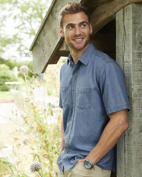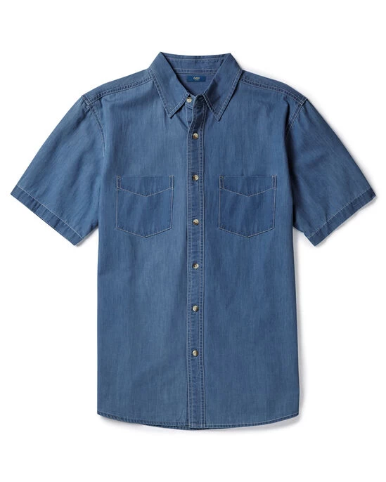 We’ve given timeless denim a smarter makeover with our dapper short sleeve denim shirt. Available in a choice of classic denim washes, these button-through cotton shirts are perfect for summery smart-casual styling, and when the temperature drops, layering over T-shirts. With twin patch chest pockets, mock horn buttons, a classic collar and twin needle stitching, we promise a polished, quality finish.