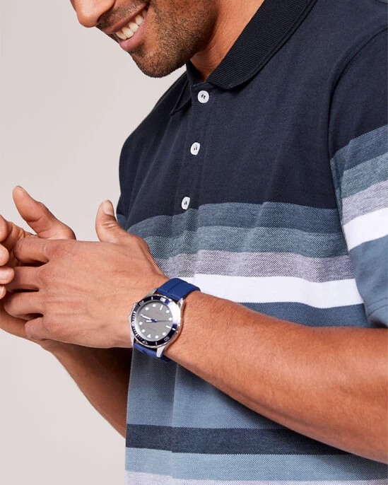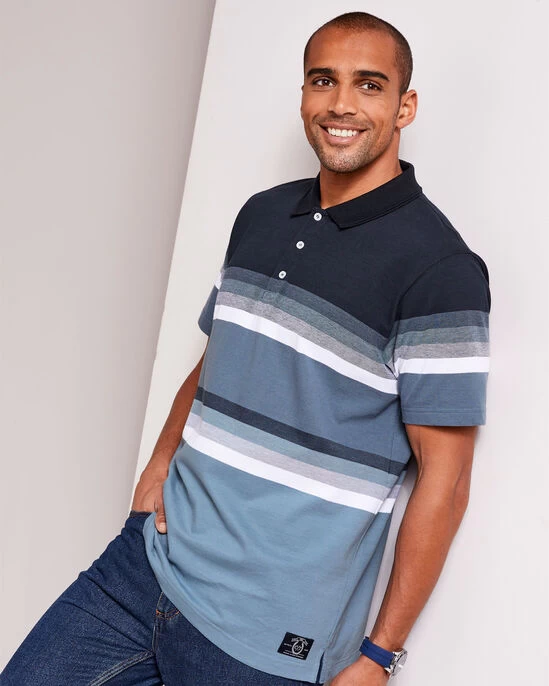 Raise your polo game this season with bold graduated stripes reminiscent of traditional rugby matches. Featuring a new rugby woven tab to the hem, this is a winning polo for comfort and style. The tactile cotton-rich fabric feels lovely against your skin, while our anti-curl collar will stand the test of time. Finished with Cotton Traders embossed branded buttons, this is a polished look that’s perfect for any occasion.