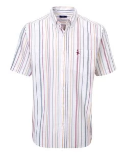 When it comes to smart-casual classics, you can’t go wrong with one of our Oxford shirts. In a choice of stripes, checks and colour-rich plains, not only is the pure cotton fabric cool and comfortable but it also contains recycled cotton, making it as kind to the planet as it is to your skin (and wardrobe!). This button-through style staple is finished with a neat two-piece button-down collar, a chest patch pocket, plus dyed-to-match pearlised buttons throughout. To complete the look, we’ve embroidered our now-iconic Charismatic Goose onto the chest pocket, bringing a little something extra to your look.Â