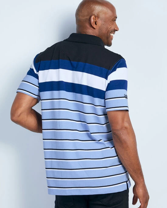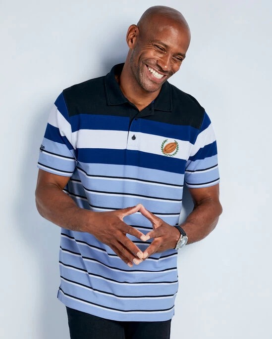 Raise your polo game this season with our bold panelled stripe design, for a classic look that’s a little bit different! Featuring our exclusive Passion for Rugby embroidery to the chest, this is a winning polo for comfort and style. The pure cotton fabric is soft and breathable on and off the pitch, while our anti-curl collar will stand the test of time. Finished with Cotton Traders embroidery on the sleeve, you’ll be scoring a drop-goal with this stylish look!
