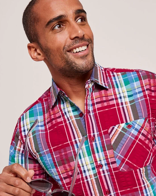 These colourful check shirts will forever be a summer favourite in pure cotton seersucker with a textured finish that cleverly wicks moisture away from the skin to keep you cool and comfortable on even the sunniest of days. Complete with classic short sleeve styling finished with a slightly curved hem and single chest pocket, you’ll never lose your cool again.