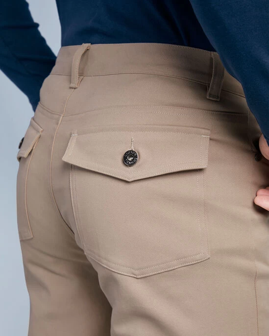 - Gunmetal branded and embossed rivets to each pocket for a traditional look