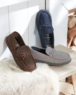 With classic moccasin styling, these slippers are your answer to everyday comfort and style. Timeless check lines the inner, while quality suede uppers and subtle bow detailing add a touch of luxury. You can’t go wrong with these classics.Â