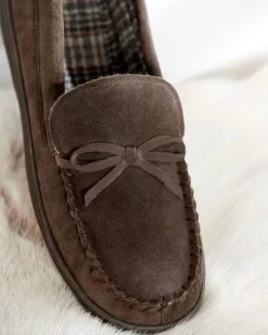 With classic moccasin styling, these slippers are your answer to everyday comfort and style. Timeless check lines the inner, while quality suede uppers and subtle bow detailing add a touch of luxury. You can’t go wrong with these classics.